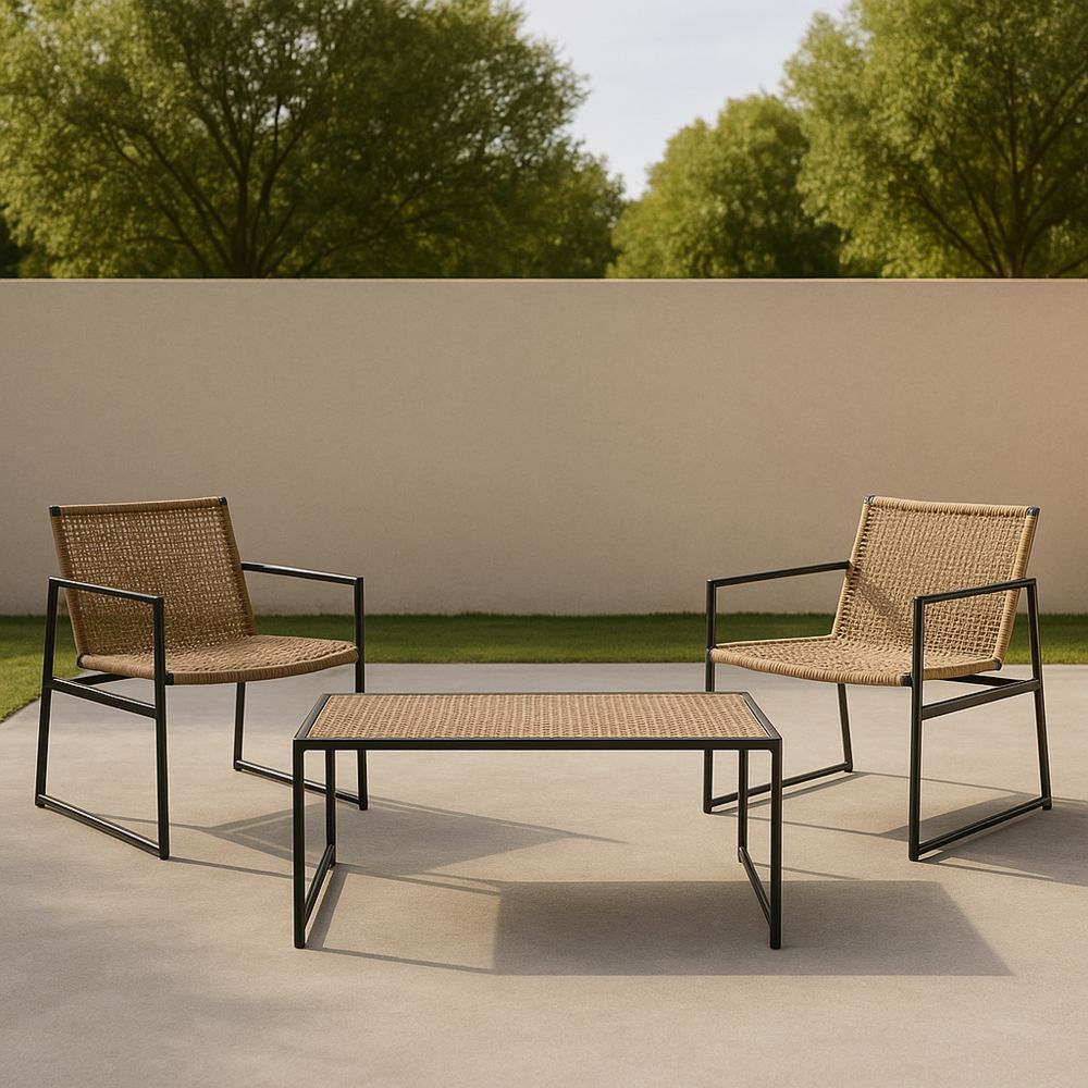 Zestaw mebli ogrodowych z krzesłami metalowymi i rattanem