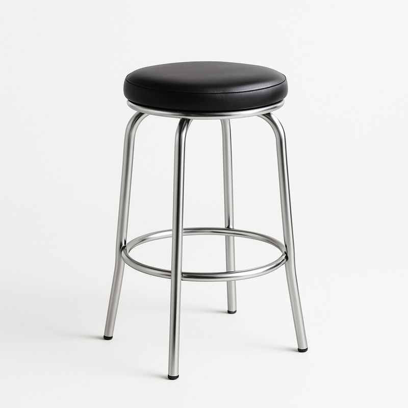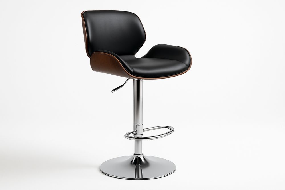 Stołek barowy obrotowy ze skóry ekologicznej czarny z regulacją wysokości
