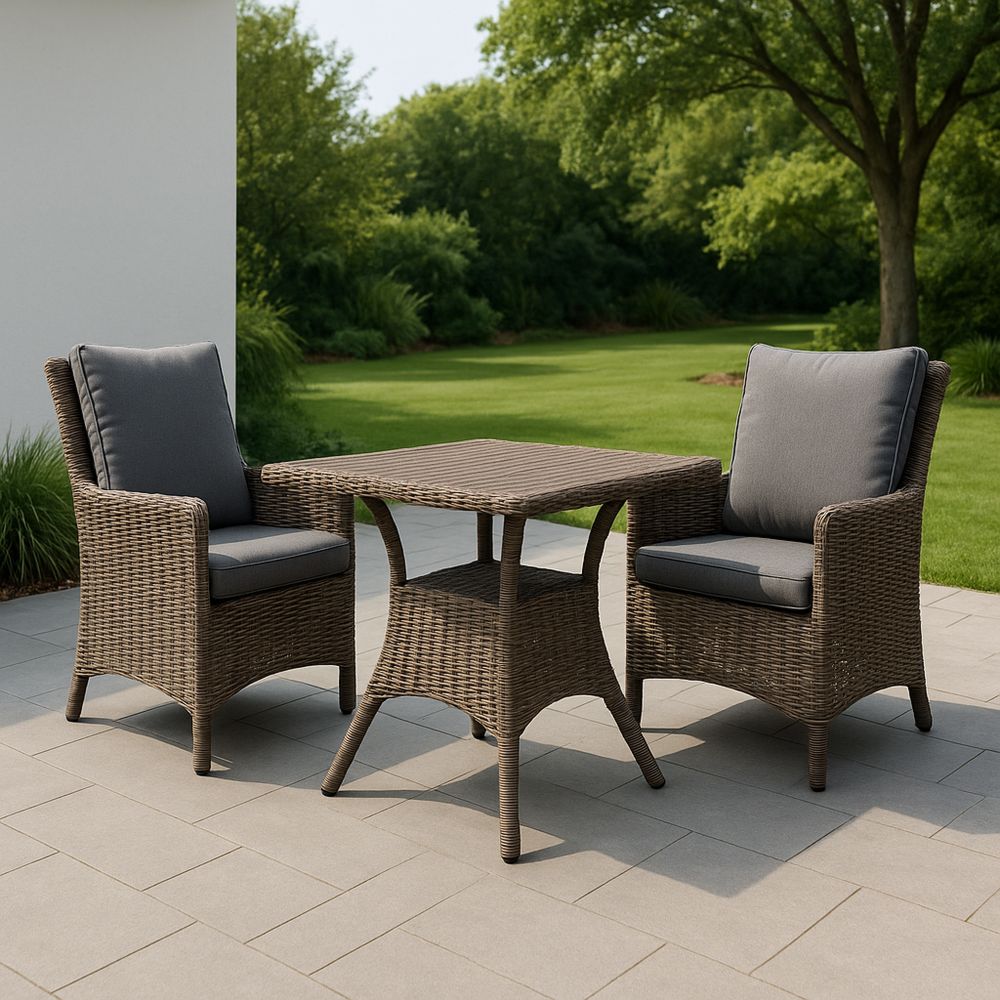 Zestaw mebli ogrodowych z Sztuczny splot rattanowy z poduszkami brązowy 2 krzesła i stół