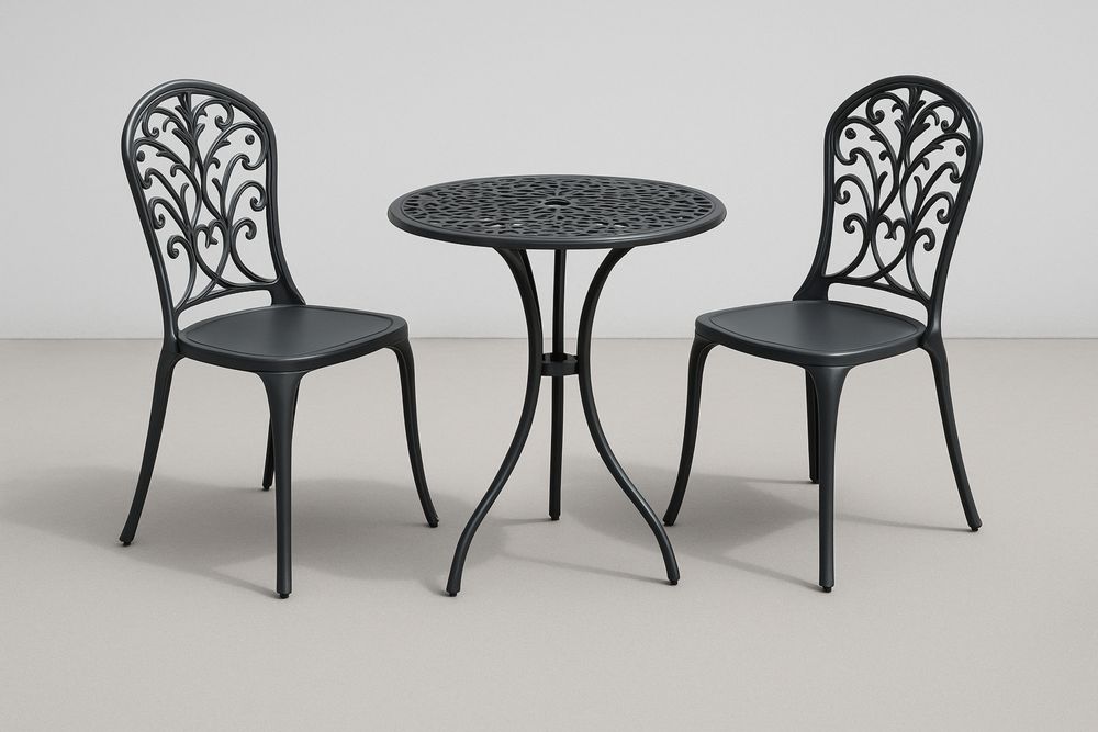 Zestaw mebli ogrodowych z aluminium z okrągłym stołem i dwoma krzesłami Czarny