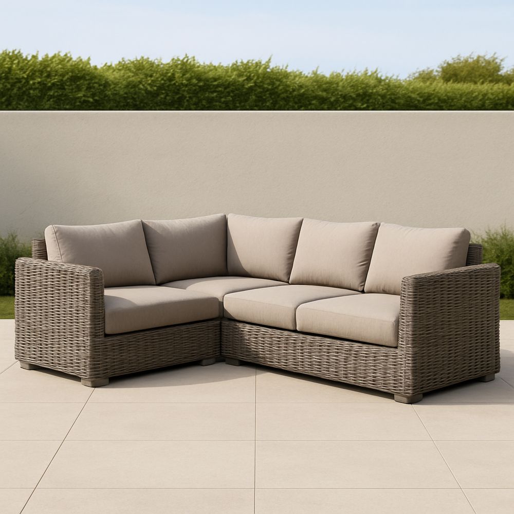 Zestaw narożny na zewnątrz technorattan beżowy poduszki