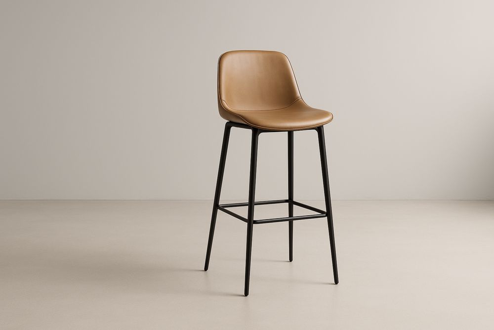 Hoker z czarnymi stalowymi nogami i brązowym poliuretanowym siedziskiem