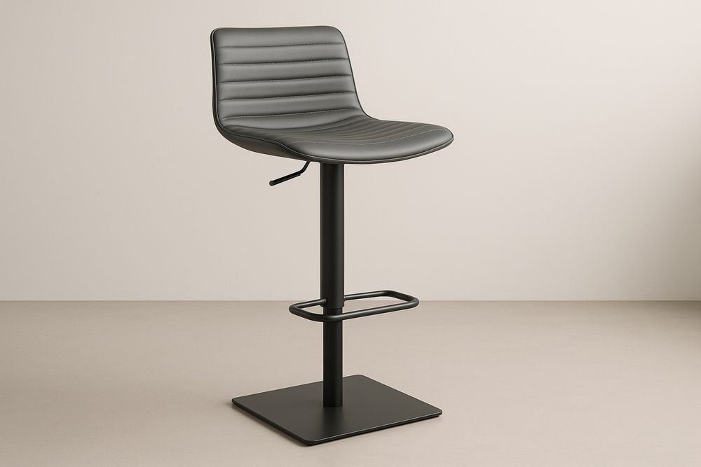 Szare krzesło barowe z ekoskóry z regulacją wysokości