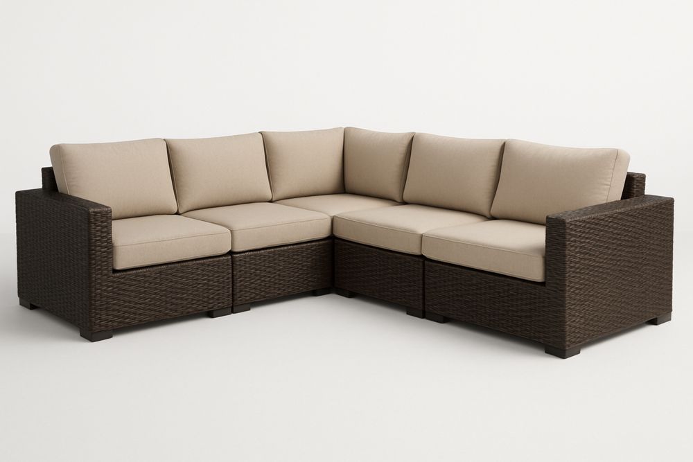 Modułowa narożna sofa z poduszkami poliestrowymi rattan brązowy